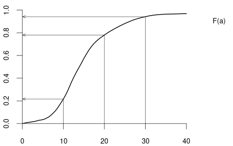 The cumulative distribution function (CDF) of a random variable Y is F(a) := P(Y \leq a), \quad a \in \mathbb R,