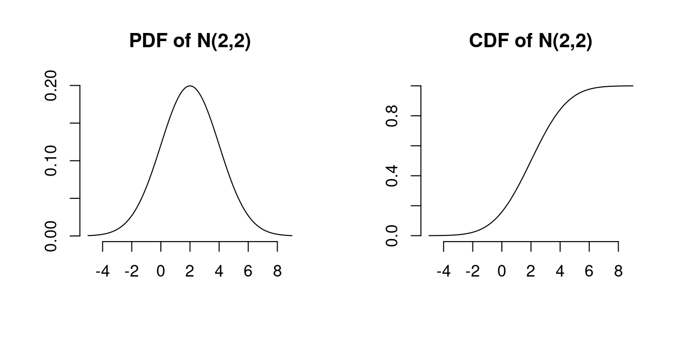plot(x,pnorm(x,2,2),ylab="",xlab="", type="l", main = "CDF of N(2,2)")