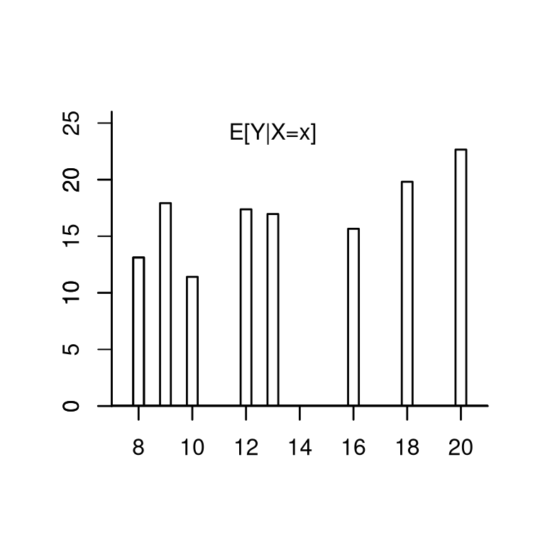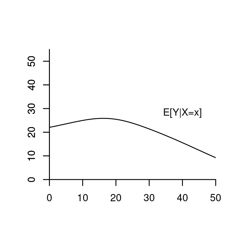 Consider again the wage and experience example. Suppose that the conditional expectation has the functional form E[wage \mid experience = x ] = m(x) = 14.5 + 0.9 x - 0.017 x^2. E.g., for x=10 we have E[wage \mid experience = 10] = m(10) = 21.8.