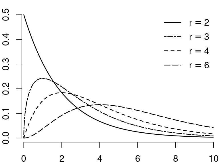 If r \to \infty then the distribution of mY approaches \chi^2_m