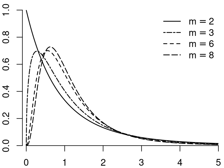 The parameter m is called the degrees of freedom in the numerator; r is the degree of freedom in the denominator.