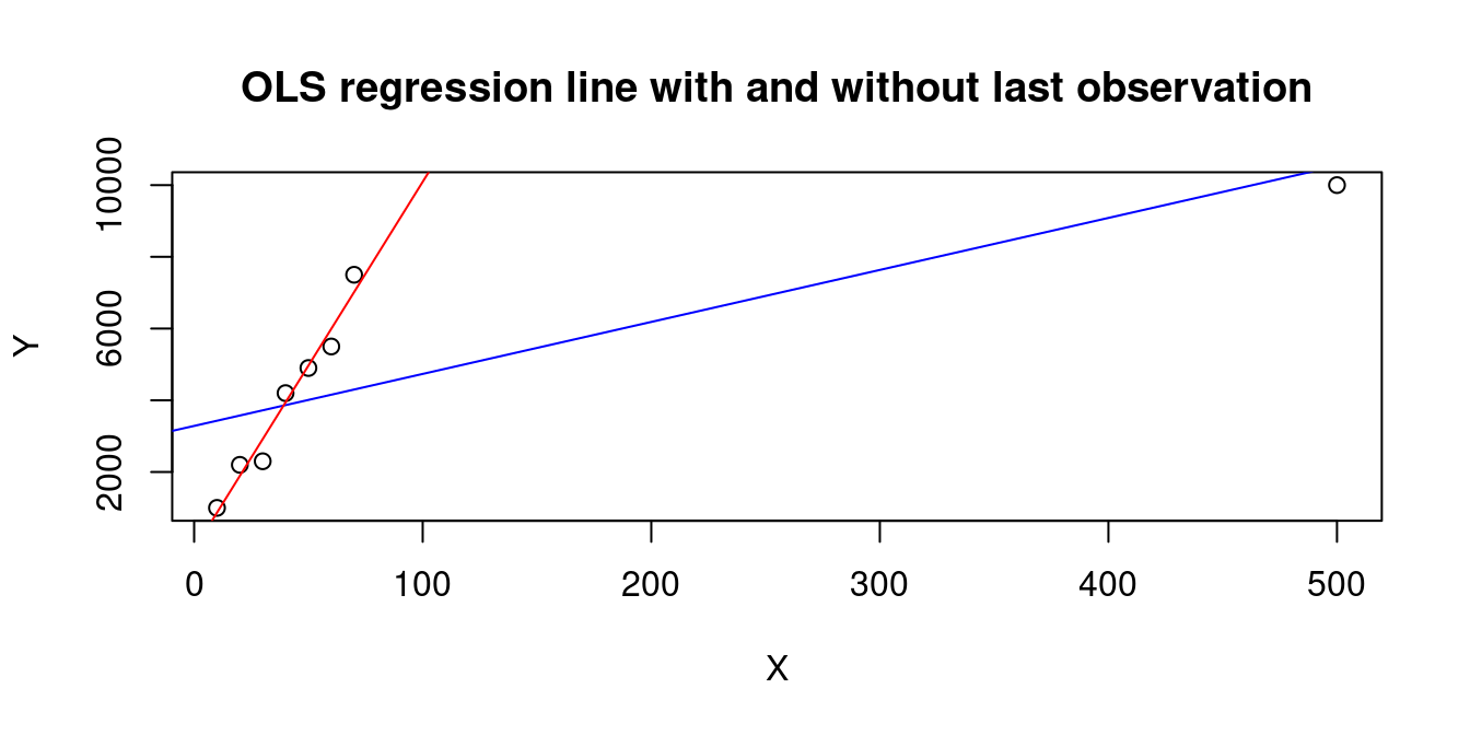 plot(X,Y, main="OLS with k=n=2")