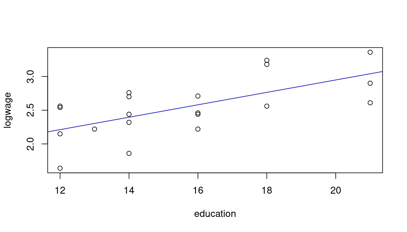 Let’s revisit the wage and education data from Table 9.1 and consider only the first 20 observations:
